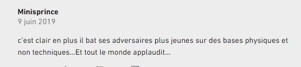 J'ai trouvé cette merde d'un grincheux ... en lisant la presse ce matin. Un commentaire d'un connard qui sûrement n'a jamais tenu une raquette ni bougé son gros cul de salope.
