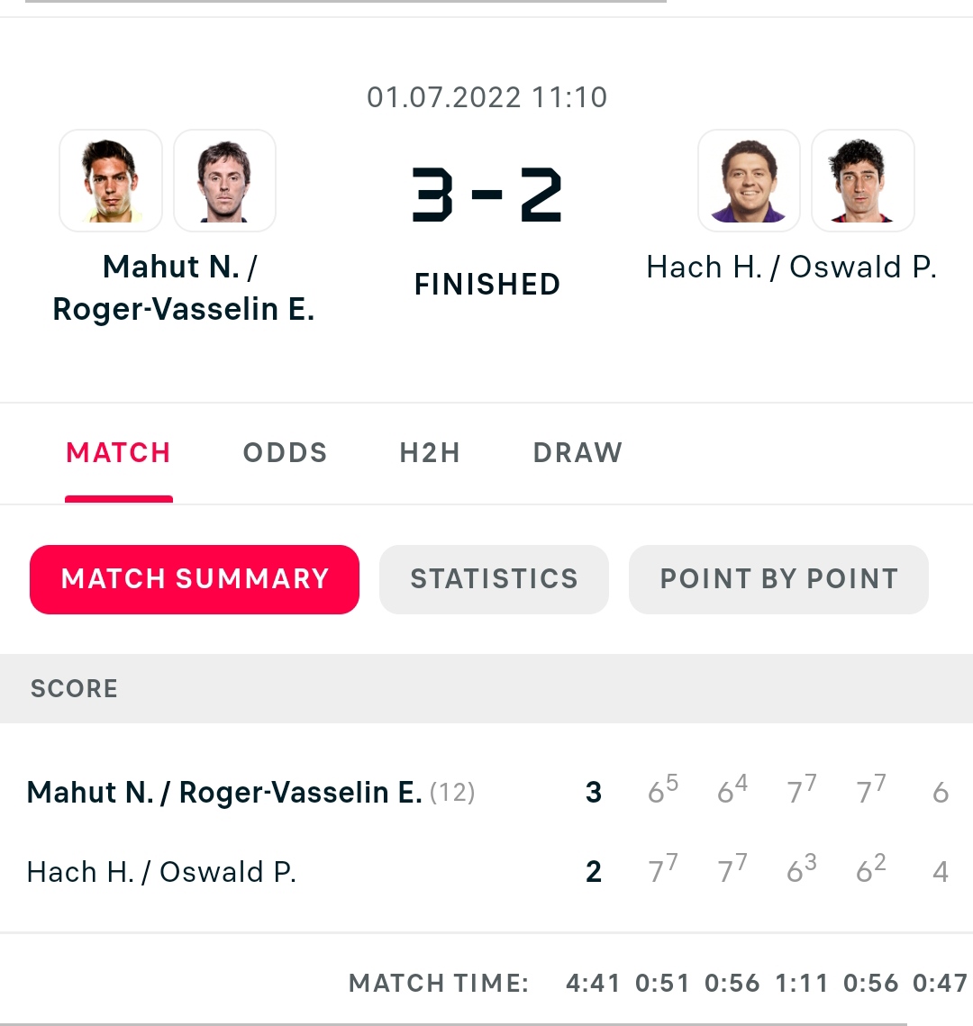 Un match de double de plus de 4h30, pauvre public :pendu: