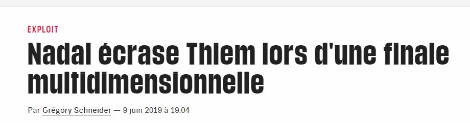 Dans ses douze victoires, il n'y a rien d'herculéen. J'ai dû regarder cinq à six jeux auj. et à chaque fois la qualité tennistique de Nadal m'a scotché : la qualité de jeu de Thiem y est pour bcp.