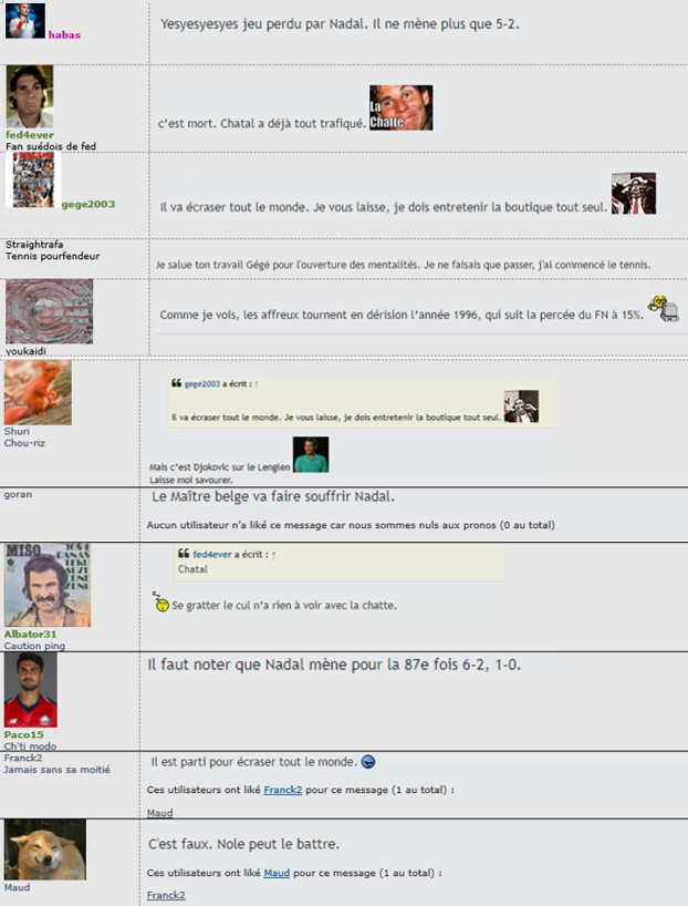 Grosso modo, l'ordre a été été établi selon le nombre de posts (sauf Fed4, j'avais commencé mon tableau par lui). :ooo:
