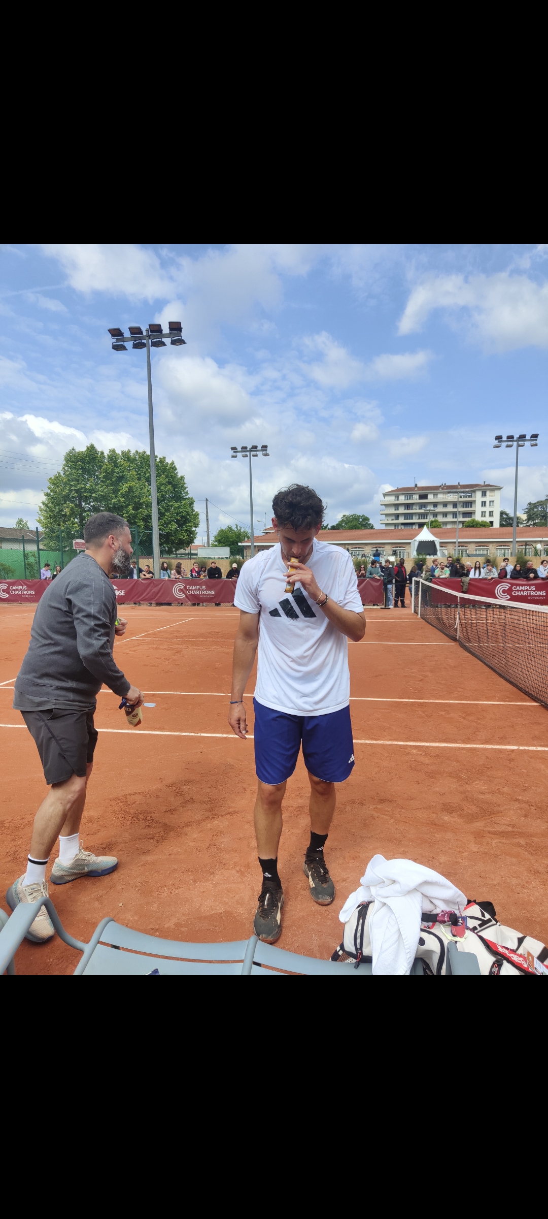 Entraînement waw Thiem ou je peux toucher les cheveux de Thiem sur le banc d'où je suis place :love:
