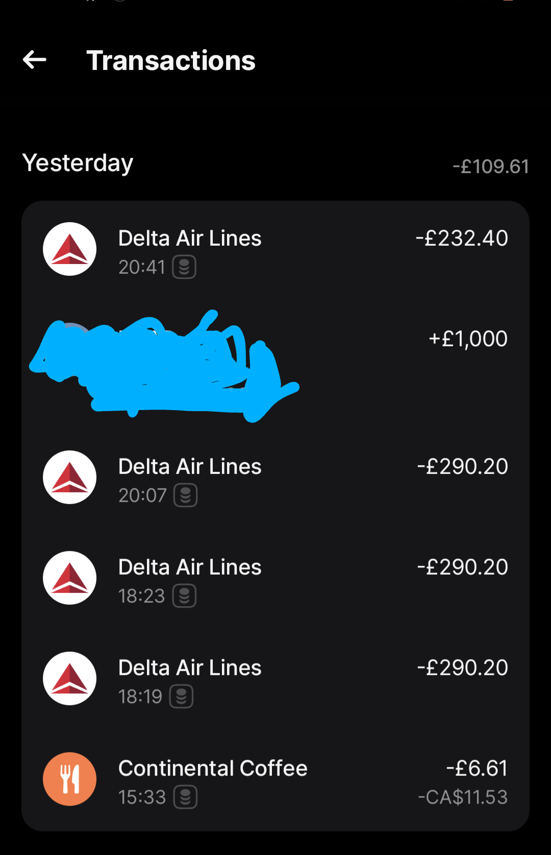 L'après-midi j'ai essayé de changer mon billet retour depuis l'App de Delta, et à chaque fois j'ai eu le fameux "oups something went wrong gneugneugneu gneugneugneu..." Et bien sûr ma carte a été débitée trois fois, le soir j'ai réussi à avoir un agent qui m'a changé le truc en ligne pour 60£ moins cher, beaucoup d'arnaques décidément