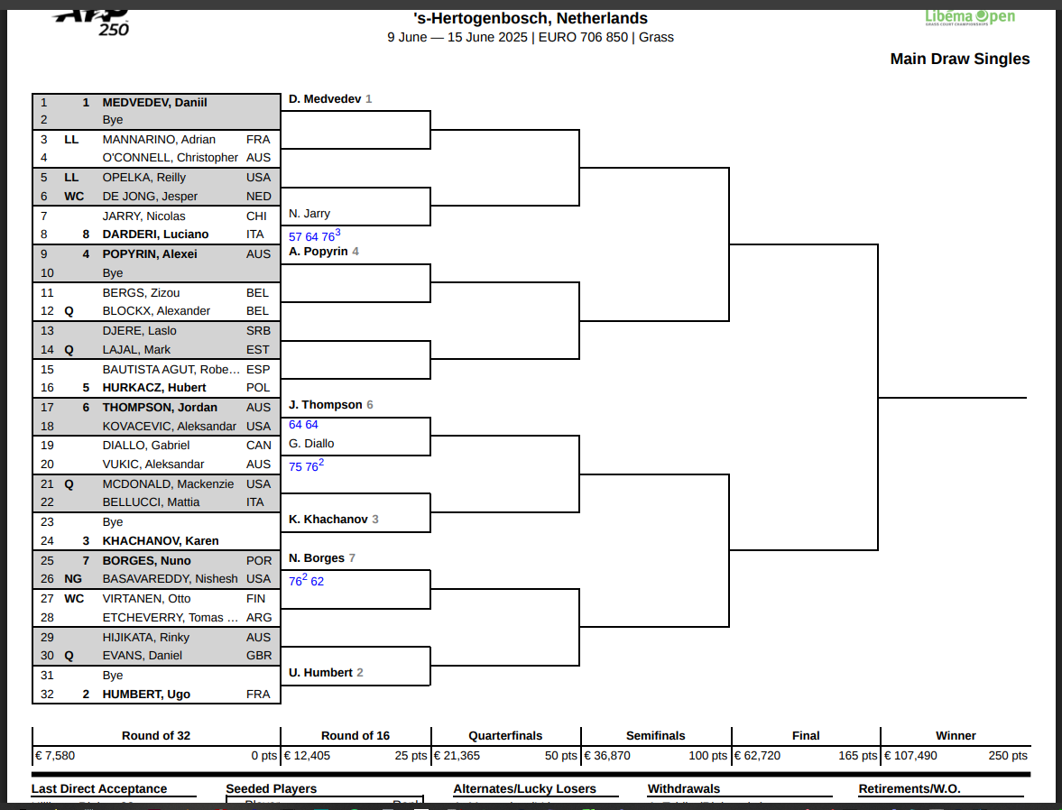 Re: 's-Hertogenbosch ATP 250 Gazon du 9 au 15 Juin 2025.