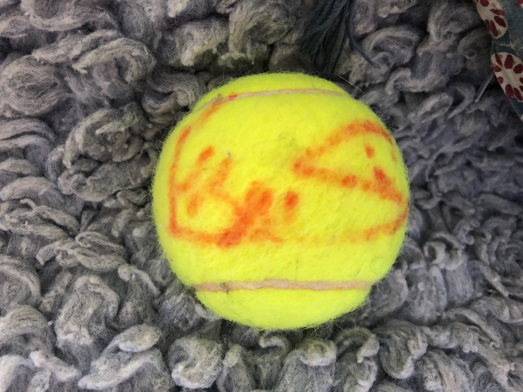 En vidant le grenier d'un membre de ma famille, j'ai trouvé une balle de tennis de Roland Garros 2009 avec un autographe dessus.